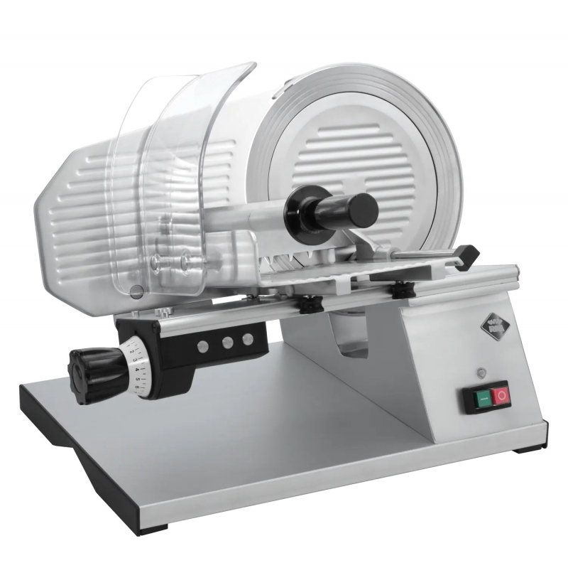 SklademNářezový stroj GMS 275XL Z od české firmy RM Gastro se šnekovým převodem a zubatým nožem o průměru 275 mm. Nářezový stroj GMS 275XL je vhodný do každého gastronomického provozu. Nářezový stroj GMS 275XL Z je opatřen motorem s ventilátorem a pojistkou proti přehřátí, brusným zařízením se dvěma kotoučky pro snadné nabroušení nože.