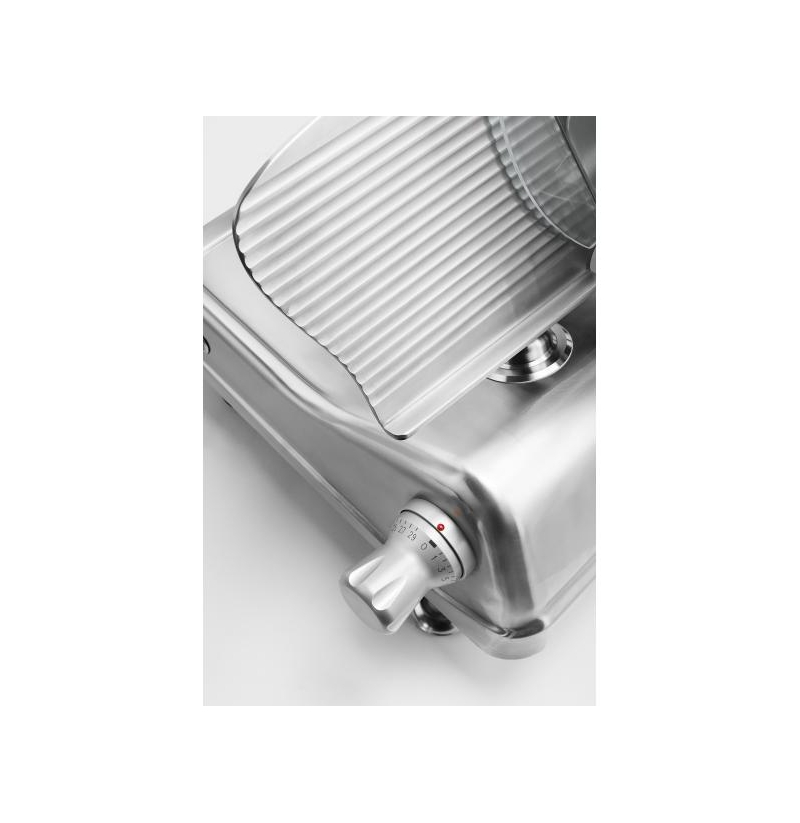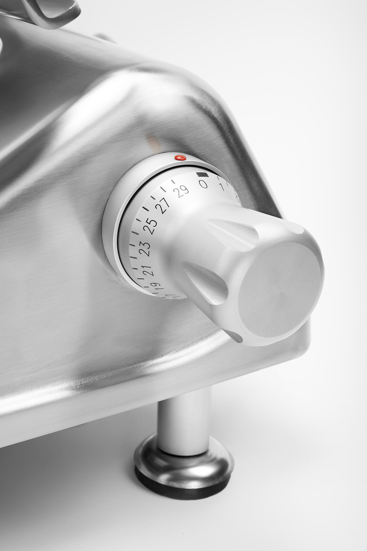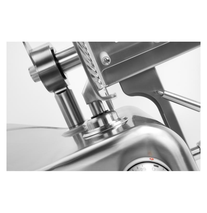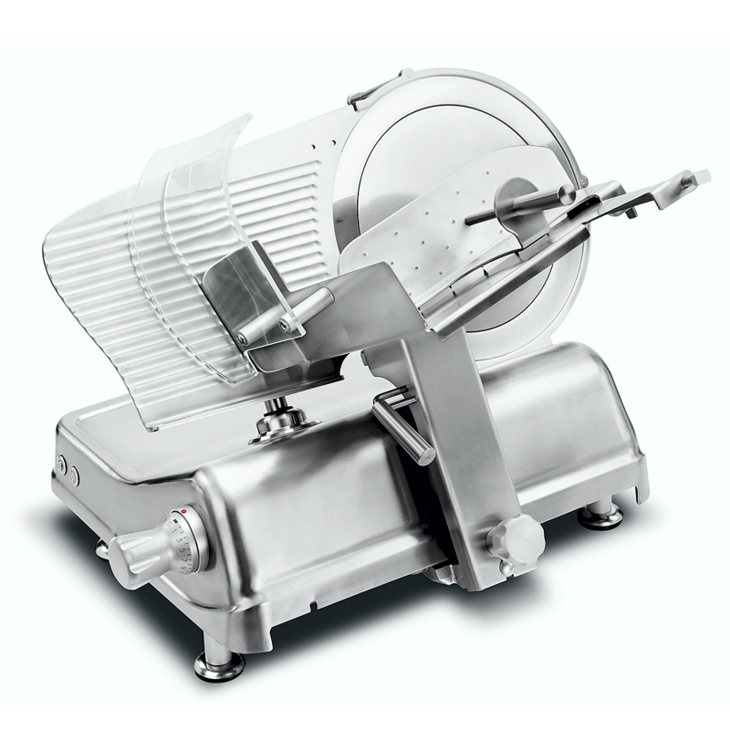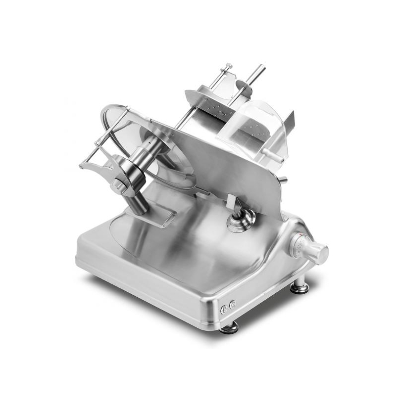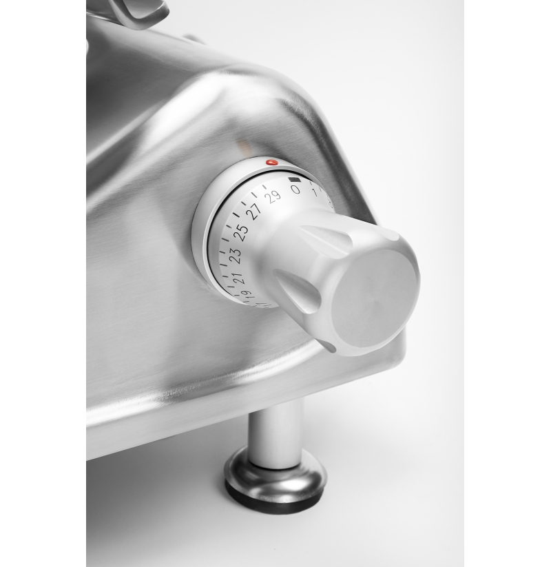 Obvykle do 3 týdnů Není sklademProfesionální gravitační nářezový stroj X35 nerezový italského výrobce Rheninghaus. Průměr nože 35 cm. Síla krájeného plátku 0 - 30 mm. Šnekový převod pohonu. Nerezové provedení konstrukce nářezového stroje X35. Určeno především pro krájení uzenin.