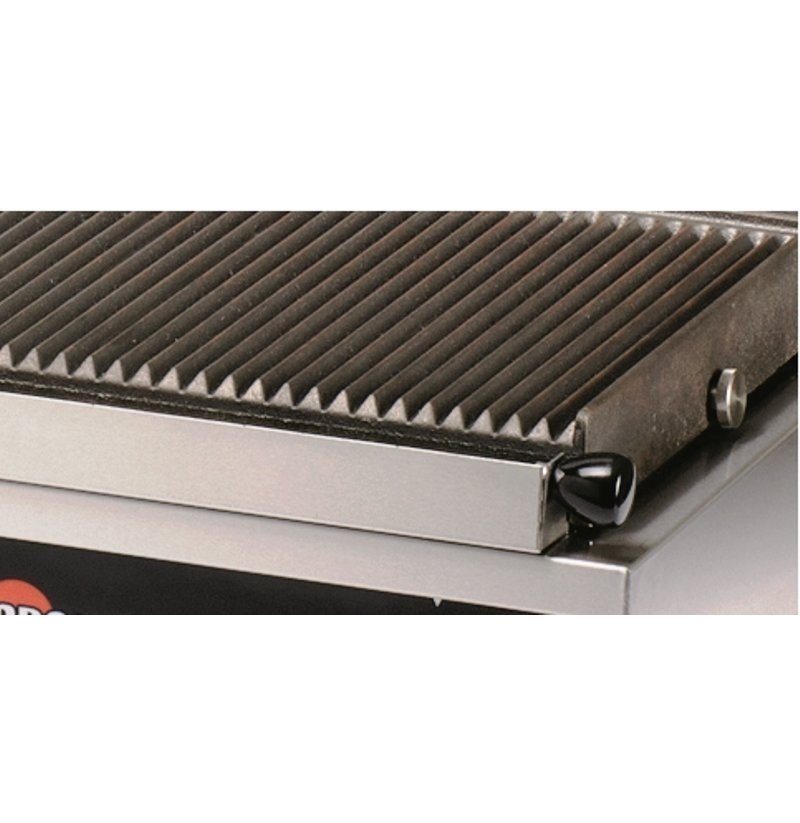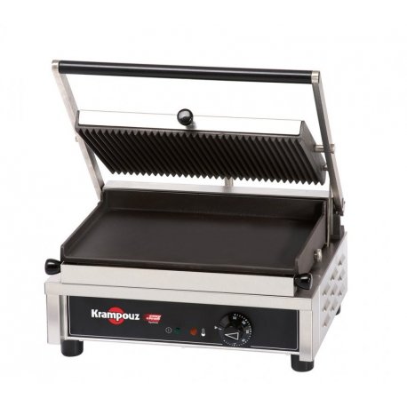 SklademNová modelová řada kontaktních multifunkčních grilů 2v1 na Paniny Krampouz GECID4 s kompaktním topným tělesem. Spodní deska hladká, horní deska rýhovaná.