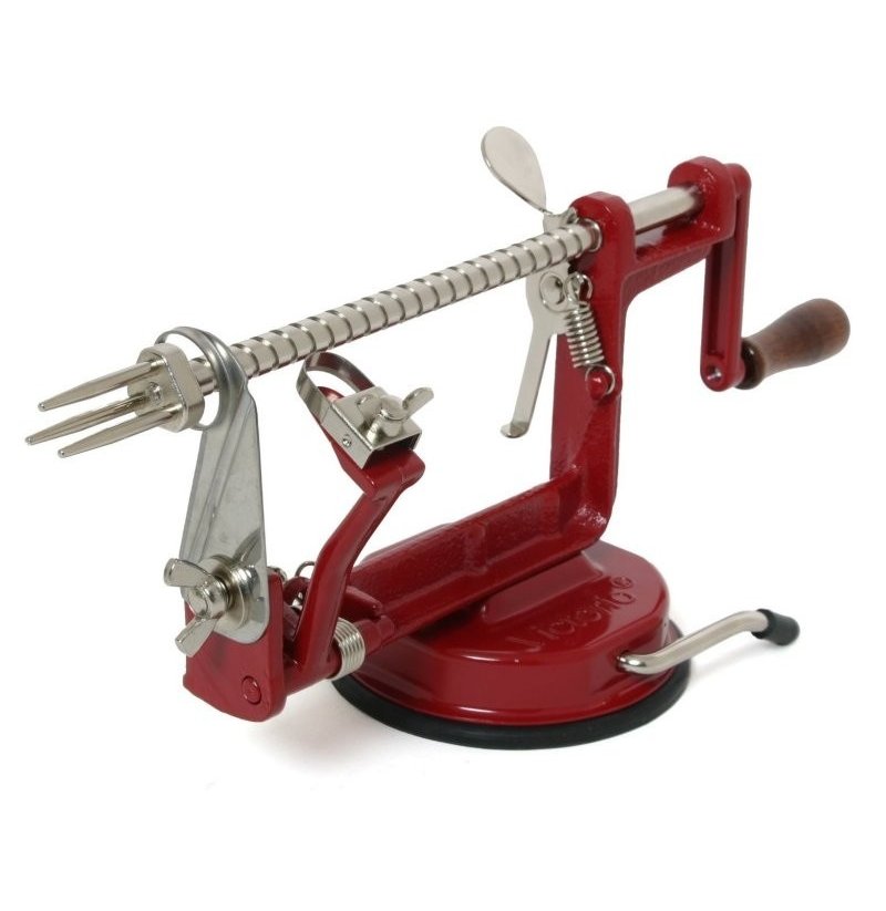 Skladem > 5ksMultifunkční lakovaný ruční loupač a kráječ jablek pro domácí použití, dvě tloušťky plátků 2 a 4 mm ideální pro sušení, pečení ale i pro přímou konzumaci čerstvých jablíček.