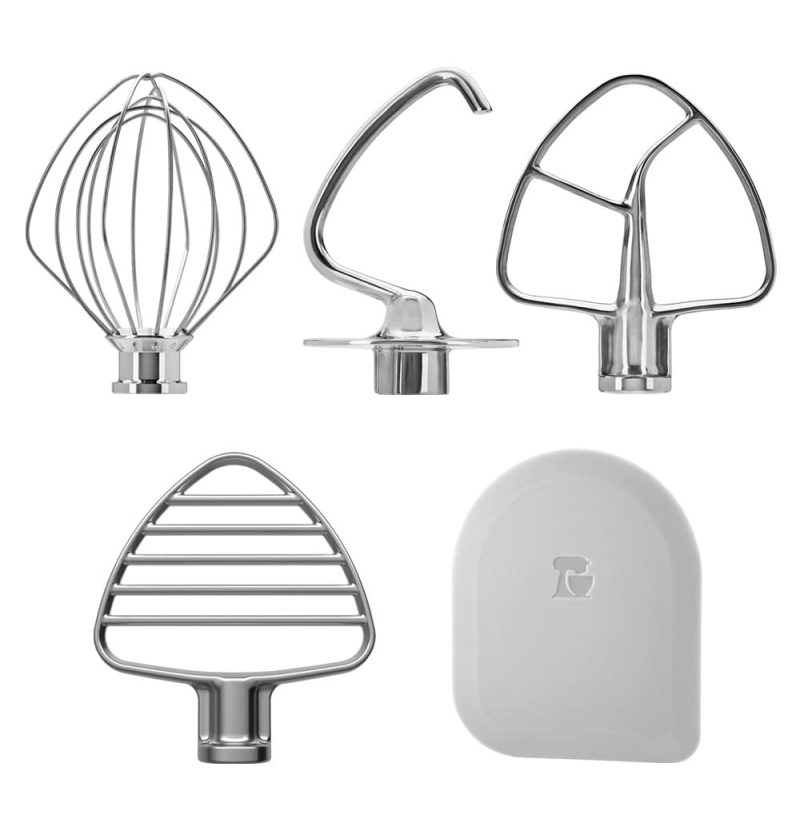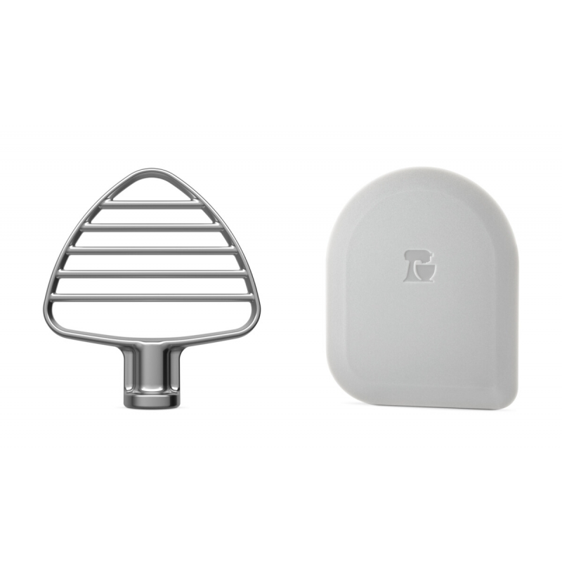 Šlehač na těsto a stěrka 5KSMPB5SS -utřete máslo pomocí šlehače na těsto. Navržený k utření másla v míse, aby se vytvořila konzistentní textura. Dále lze použít k drcení masa a lisování ovoce a zeleniny. Součástí je plastová stěrka pro snadné čištění šlehače.