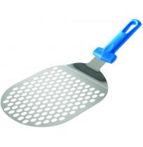 SklademVíceúčelová nerezová oválná perforovaná lopatka určená pro servírování a manipulování s pizzou.