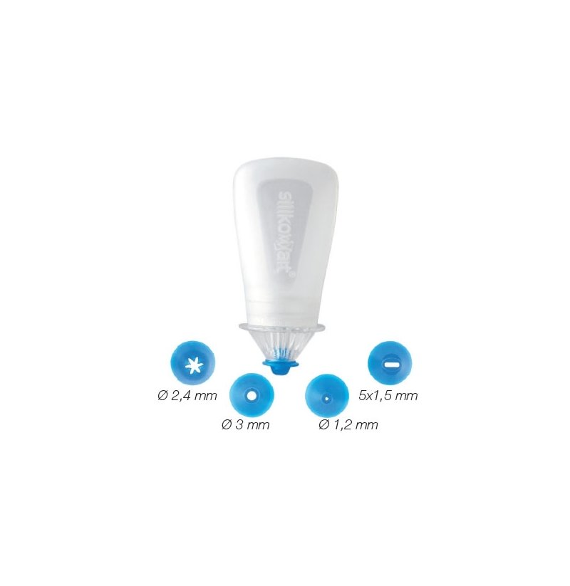 SklademSilikonová tužka se sadou 4 druhů zdobících špiček italského výrobce Silikomart pro snadné kreativní zdobení nejen cukrářských výrobků.