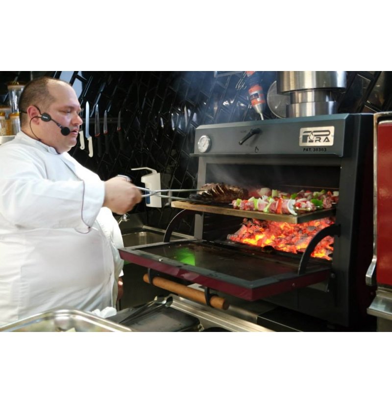Není sklademUnikátní pečící trouba určena pro grilování nad hořícím dřevěném uhlí, které dává každému pokrmu nejautentičtější grilovanou chuť, aroma, šťavnatost a dokonalou strukturu. Určeno až pro 90 osob.