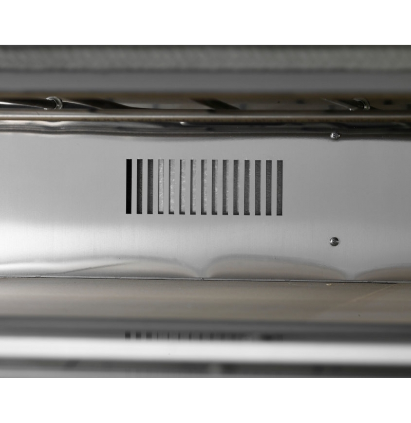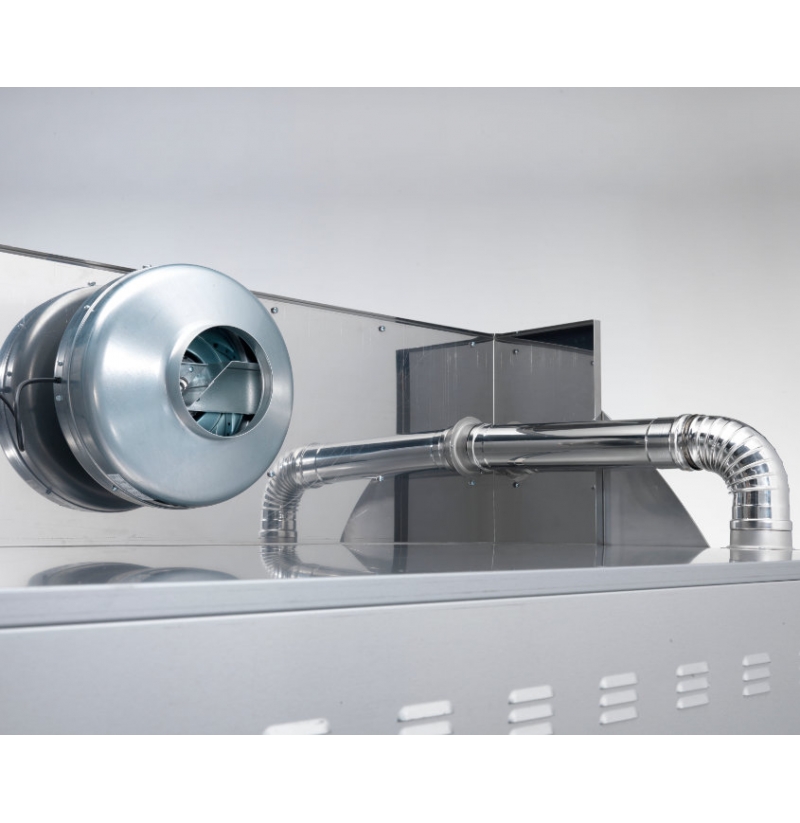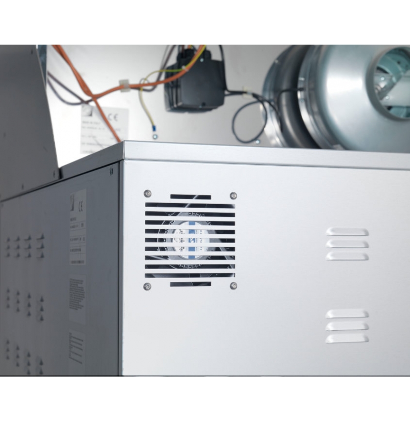 Tato trouba je vybavena revolučním systémem rekuperace tepla, která po otevření dvířek okamžitě cirkuluje teplo zpět dovnitř, aby se minimalizovaly tepelné ztráty. Tyto trouby lze dodat s podstavcem a plně funkčním odsavačem par, který by měl být vyveden ven mimo budovu.