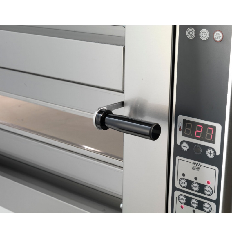 K dalším přednostem patří prosklená dvířka a vnitřní osvětlení pro kontrolu průběhu přípravy pizzy a dno z cordieritových kamenů, které zaručuje autentickou přípravu italské pizzy.