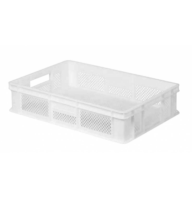 Zboží je na objednávku. Obvykle 3 - 4 týdny Není sklademBílá děrovaná přepravka 60x40x13 cm pro skladování čerstvých vyrobených těstovin (pasty), vhodná ke stohování na sebe. Výška 13 cm. Bez víka.