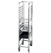 Není sklademJeklový regálový vozík v nerezovém provedení je opatřen otočnými a dvakrát brzděnými kolečky. Model je v provedení 14 x zásuvy pro GN 1/1 s roztečí 80 mm. Zámek, který zabraňuje samovolnému uvolnění nádob ze vsunů.