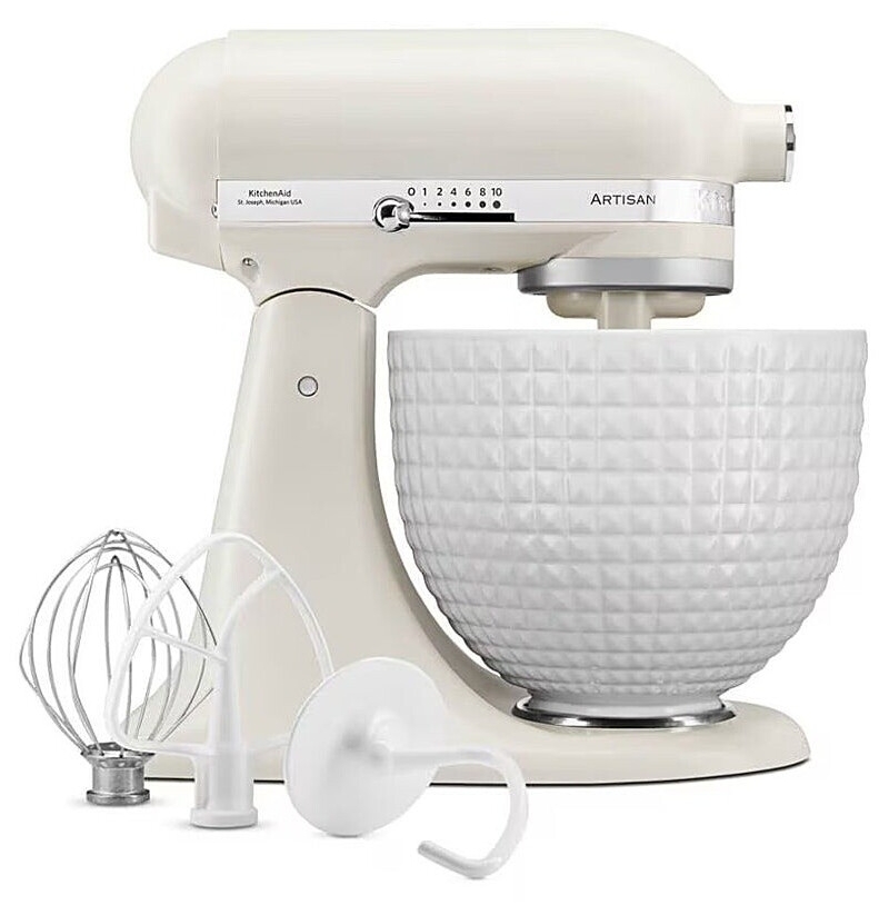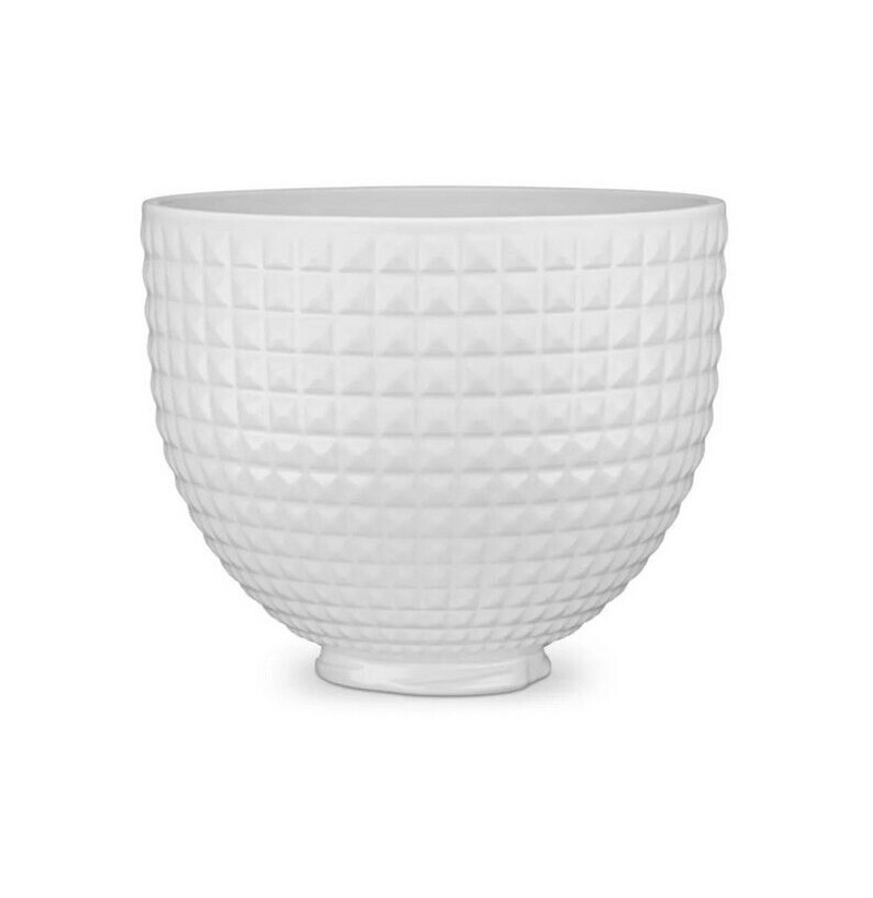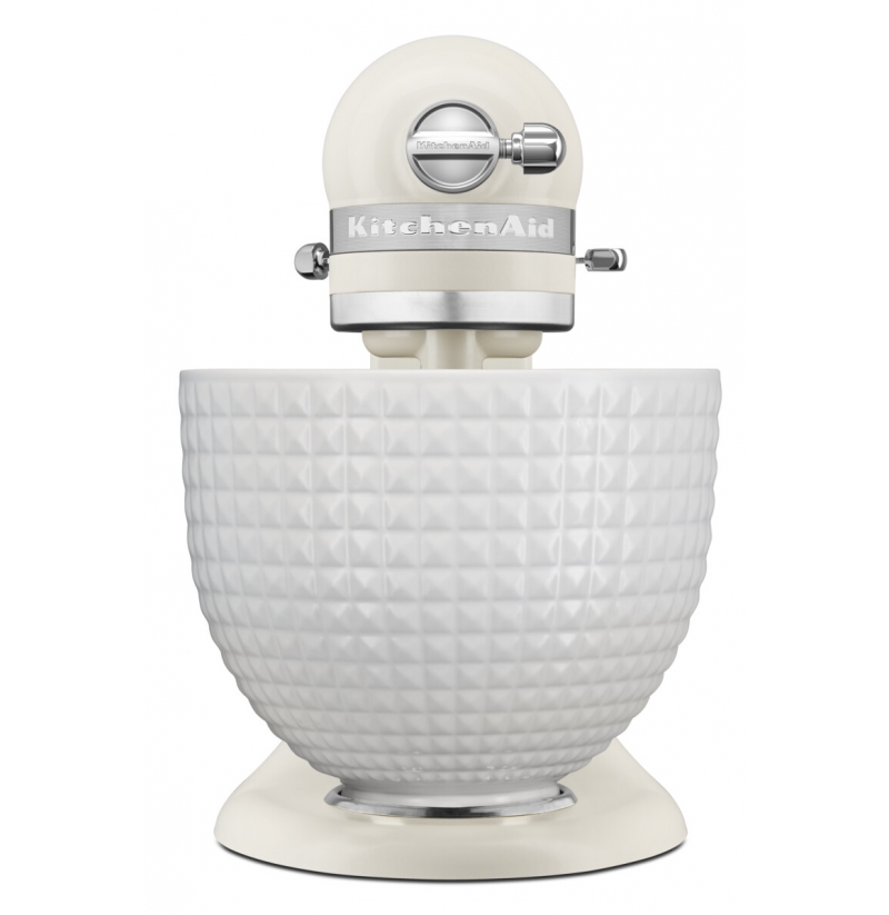 Součástí je rovněž bílá keramická mísa o objemu 4,8 litru (5KSM2CB5LS) a to pro mixování až do hmotnosti 1 kg mouky (cca 2 kg těsta).