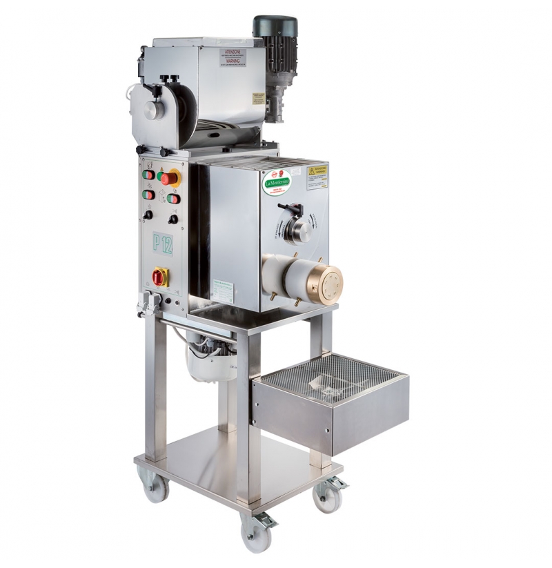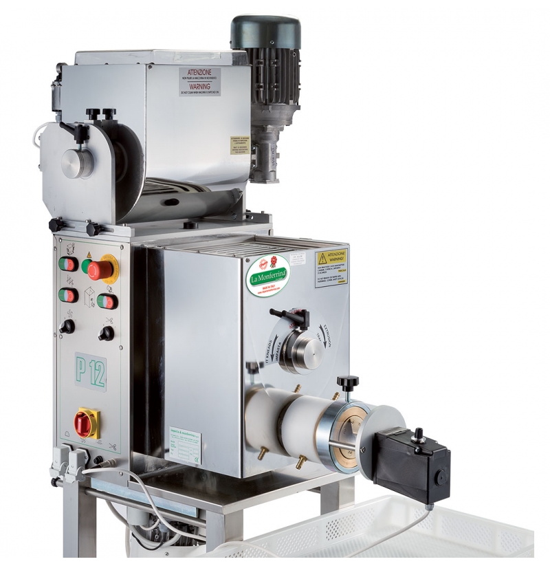 Dostupnost 4 - 6 týdnů Není sklademMultifunkční automatický výrobník tlačených těstovin La Monferrina velké kapacity model P12 včetně 4 standartních bronzových matric s napájením 400 V.